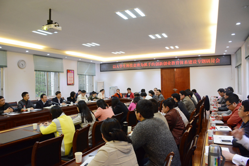 梁福沛副校长对学校大学生科技竞赛和创新创业教育工作提出了要求,他要求各学院要以创新创业教育教学体系建设为重点,以大学生科技活动为抓手,大力推进大学生创新创业教育工作;各单位要召开专题会议研究,系统谋划,形成合力,高度重视深化推进大学生创新创业教育改革工作。
