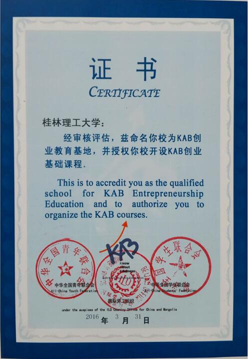 KAB创业教育项目是由团中央、全国青联与国际劳工组织共同实施的国际合作项目。该课程采用了全互动式、参与式的教学模式,突出以学生为中心的教学思想,以鼓励、促使学生主动思考、亲身体验为主,是一门有创意、实用性强的创业基础教育课程,对于提升大学生毕业后的职场适应能力和创业能力,提高创业成功率具有重要的现实意义。