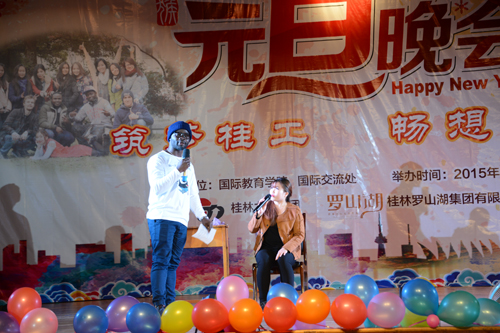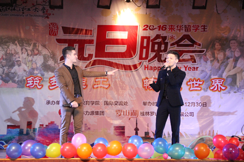 12月30日晚,一场由Beat365官网来华留学生倾情奉献的2016元旦联欢晚会在屏风南校区礼堂上演,来自近40个国家和地区的留学生们同台演出,共同奏响欢乐新年乐曲。解庆林校长、曾繁荣总会计师和桂林力源集团黄大鹏总监以及学校相关部门负责人出席了本次活动。