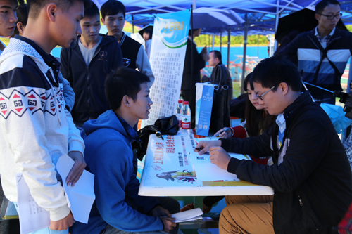 11月13日,南宁分校2016届毕业生就业双向选择洽谈会在空港校区篮球场举行。江西铜业、南方有色金属集团、百色百矿集团、柳州钢铁(集团)等240多家区内外企事业用人单位云集分校招贤纳士,提供实习、就业岗位近万个。分校3300余名2016届毕业生参加双选会。据统计,用人单位需求专业覆盖分校全部专业,专业对口率高,不少毕业生与用人单位在双选会上达成了就业意向。