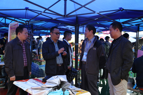自治区就业局副局长黎经宇(左二)到双选会现场指导