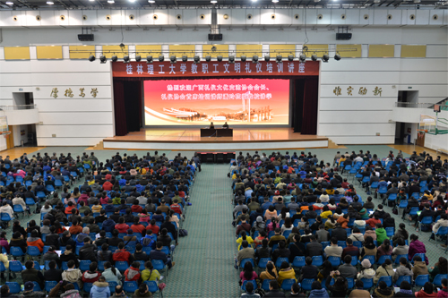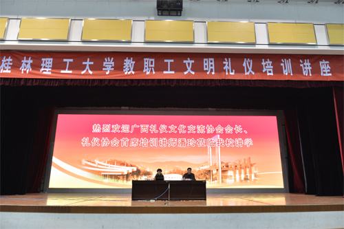 “不学礼,无以立”,中国自古就有“礼仪之邦”的美誉,教师群体又是讲文明、懂礼仪的典型代表,为进一步培育和践行社会主义核心价值观,弘扬中华传统美德,更好地促进教职工综合素质和能力的提升,大力营造良好的校园礼仪氛围,积极创建文明和谐校园,12月22日下午,学校在屏风校区体育馆三楼举办教职工文明礼仪培训讲座活动。广西礼仪文化交流协会会长、礼仪协会首席培训讲师潘玲女士应邀作了以“国民礼仪教育”为主题的文化礼仪讲座。学校党委副书记王赣华出席讲座活动。全校教职工参加了此次培训。