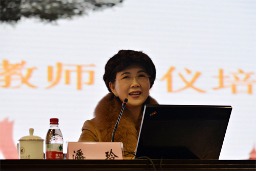 潘玲老师在讲座中强调,礼仪是中华民族的传统美德,从古至今,源远流长。礼仪是人们在社会交往中由于受历史传统、风俗习惯、宗教信仰、时代潮流等因素的影响而逐渐形成,既为人们所认同,又为人们所遵循,以建立和谐关系为目的的各种符合社会道德规范、伦理规范精神及要求的行为准则。礼仪不只是形式,更是发自内心对生命的尊重;礼仪不是束缚人的行为,而是更高层次的解放。潘玲老师分别从礼貌、礼节、礼宾、礼俗以及礼制五个方面阐释了礼仪的方式及特征。同时,她结合高校教师的职业特点,运用大量的图片、生动的事例等信息,向大家详细介绍了教师仪容仪表和言谈举止方面的规范和要求。她说,礼由心生,仪由外表,作为一名高校教师,更要注重自己的言谈举止和行为规范,在举手投足之间尽显风范和气质。潘玲老师优雅的气质、幽默的谈吐、睿智的解读,深深感染了在场的每一位教职员工,赢得了阵阵掌声。