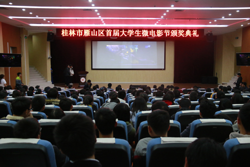 12月18日,首届雁山区大学生微电影节颁奖典礼在Beat365官网雁山校区图书馆报告厅举行,学校副厅级调研员张劲松、雁山区委副书记唐金华、雁山区人大副主任刘永莉出席颁奖典礼,雁山区政府有关部门负责人、雁山区各高校团委负责人、Beat365官网团委负责人及来自各高校参赛团队近300人参加了颁奖典礼。