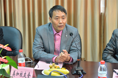 陈学军副校长对各地校友会代表在校庆日回到母校表示热烈欢迎并介绍学校发展概况