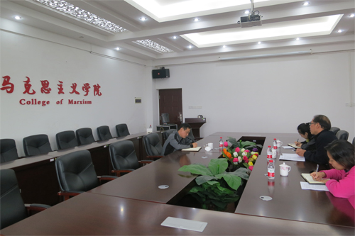 11月10日,学校副厅级调研员张劲松深入马克思主义学院,指导学院“三严三实”专题教育第三专题集中学习研讨。研讨会在马克思主义学院07415会议室举行,马克思主义学院党政领导班子全体成员参加了研讨会。 会上,学院党委书记王青山首先汇报了马克思主义学院围绕“营造良好学研环境,提高学院教学科研水平”为主题开展的“三严三实”专题教育第三专题学习研讨及前期调研工作开展的情况。随后,学院其他班子成员结合各自学习工作情况,就“严以用权,真抓实干”等方面内容逐一作了发言。 张劲松调研员在认真听取汇报后,充分肯定了学院党政领导班子在开展“三严三实”专题教育中所作的调查研究工作。他指出,学院新的领导班子,要有信念、有激情、敢担当,把马克思主义学院的工作推到一个新的高度。要把“三严三实”专题教育与学院的实际工作有机结合起来,找到制约学院发展的有效办法,寻求工作的突破口,以此带动学院工作的全面发展。他希望学院领导班子进一步增强践行“三严三实”的思想自觉和行动自觉,结合马克思主义学院的实际,不仅做理论的宣传者和学习者,更要做日常实际工作推进的表率者,真正实现理论与实际的完美结合。