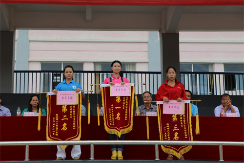 女子团体总分前三名系部代表上台领奖