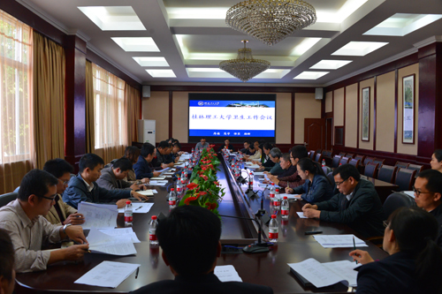 为做好2015年自治区级“卫生优秀学校”复评迎检工作,建立健全“卫生优秀学校”长效机制,11月5日下午,学校在屏风校区教八楼三楼会议室召开卫生工作会议。学校副校长肖岳峰出席会议并讲话。学校创建“卫生优秀学校”工作领导小组及办公室全体成员参加了会议。