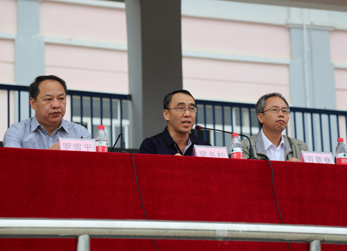 分校党委书记罗雪平(中)宣布南宁分校第二十五届运动会开幕