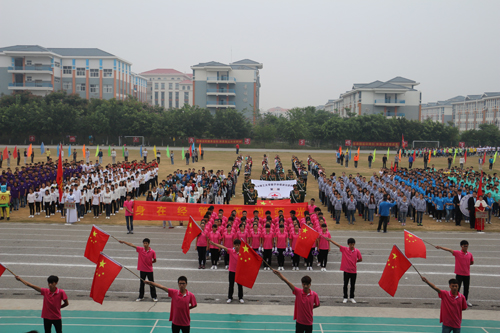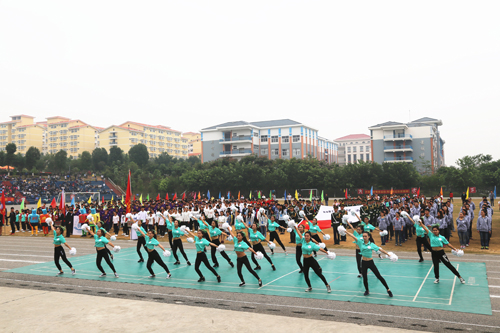 上午8点30分,分校运动场人声鼎沸,锣鼓喧天,彩旗飘扬,人头攒动。在国旗队的引领下,鲜花队、彩旗队、教工队、裁判队、各系运动员代表队依次入场。各系迈着整齐划一的步伐,喊着铿锵有力的口号,先后通过主席台,并进行形式多样的风采展示。精彩的舞狮、啦啦操、捕俘拳等表演一次又一次将现场推向高潮。空港学子用他们独特的创意、欢快的舞姿,展示桂工的蓬勃朝气。他们个个昂首阔步、精神抖擞,洋溢着青春的活力和激情。