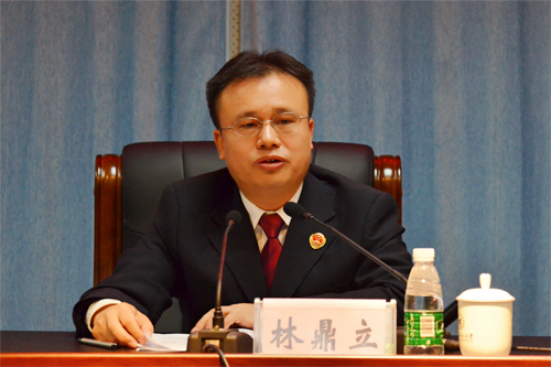 桂林市人民检察院党组书记、检察长林鼎立为学校全体领导干部做廉政辅导报告