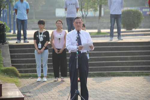 升旗仪式后,学校副厅级调研员张劲松作了讲话。他首先向已经顺利完成入学教育和军训任务的2015级新同学表示亲切的问候;向全校辛勤工作、刻苦学习的广大师生致以节日的祝贺。他和在场的师生一起回顾了建国66年来祖国发生的沧桑巨变和取得的伟大成就,以及学校59年来在人才培养、科学研究、社会服务和文化传承与创新方面创造的辉煌业绩。“广大青年要从现在做起,从自己做起,勤学、修德、明辨、笃实,使社会主义核心价值观成为自己的基本遵循,并身体力行大力将其推广到全社会去,努力在实现中国梦的伟大实践中创造自己的精彩人生。”他用习近平主席的话,勉励广大学子要自觉践行社会主义核心价值观,锤炼高尚品格,敢于有梦、勇于追梦、勤于圆梦。希望广大同学能够深刻领会“厚德笃学 惟实励新”的校训,继承和发扬“艰苦创业、敬业奉献、团结协作、开拓创新”的桂工精神,胸怀祖国,牢记使命,志存高远,追求卓越,用青春和激情绘就祖国辉煌的蓝图,为实现Beat365中文官方网站新的腾飞,为实现中华民族的伟大复兴的中国梦贡献自己的青春和力量。