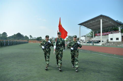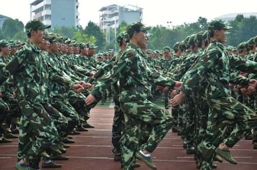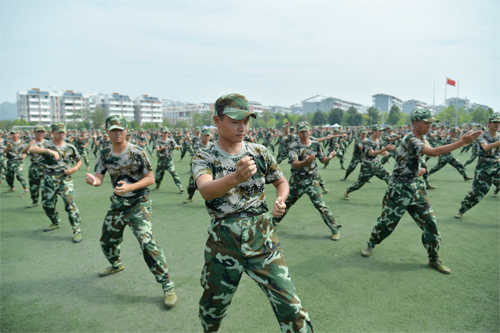 在军旗的指引下,二十八个连队依次入场,他们步伐铿锵、口号嘹亮、踌躇满志、意气风发,他们用青春和热血托起明天火红的太阳。最后出场汇演的男子擒敌拳和女子军体拳表演方队“杀”声响亮,踢腿凌厉有力,出拳虎虎生威,更是展现出了新生们历经磨练后英姿勃发的精神风貌。