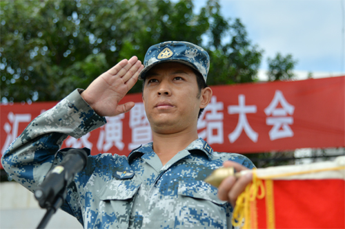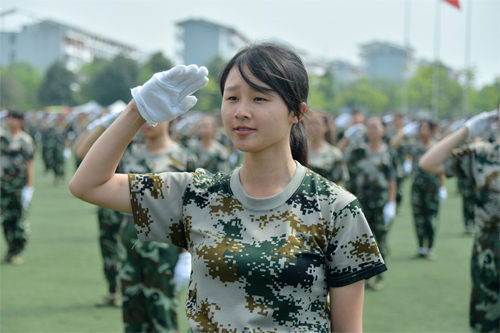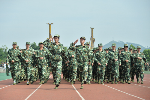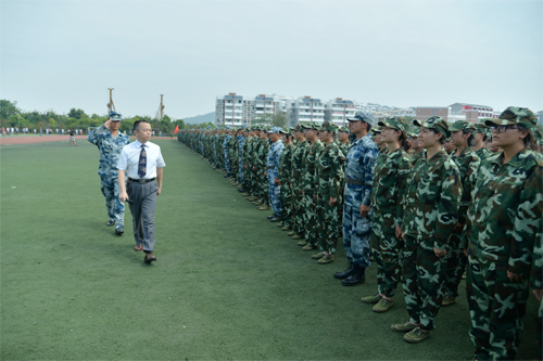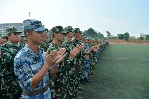 千淘万漉虽辛苦,历尽军训始到金。早上8点多,历经了14天艰苦军训,早已把每个动作都牢记于心的新生们,还是早早地到运动场集合进行最后的动作温习,为的是给汇报表演交上一份圆满的答卷。上午10点,在全场肃然起立奏唱庄严雄壮的国歌之后,仪仗队护卫着人民解放军军旗率先接受检阅,随后,学校副校长肖岳峰在承训部队负责人的陪同下检阅了各军训方队。