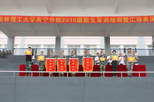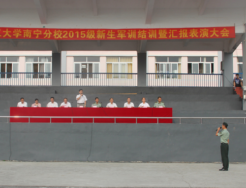 在嘹亮的《中国人民解放军进行曲》中,南宁分校2015级新生军训结训暨汇报表演大会圆满落幕。