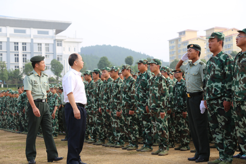 分校校长王文在大会上讲话。他首先向辛勤付出的教官和工作人员表示衷心的感谢,并祝贺分校2015级全体新生顺利完成军训任务。王文指出,军训是入校大学生的第一课,军训生活的体验,是同学们一生中最难忘的经历,是同学们人生道路上一笔极其宝贵的精神财富,也是迈向成功的新起点。王文向2015级新生提出了两点希望:一是希望同学们在以后的学习和生活中,将军训中培养的好思想、好作风、好精神传承下去;二是希望同学们做到与时俱进,弘扬“艰苦创业、敬业奉献、团结协作、开拓创新”的桂工精神,做一个理想远大、热爱祖国、追求真理、勇于创新、德才兼备、全面发展的人。