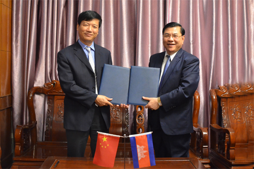 解庆林校长(左)与柬埔寨贝尔太国际大学校长Ly Chheng 签署合作备忘录