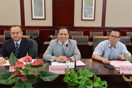 周国清副校长(中)介绍Beat365官网国际交流合作与留学生教育发展状况