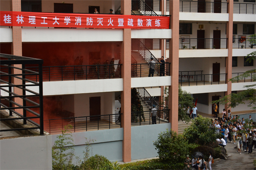 为了进一步加强学校安全教育工作,增强学校师生消防安全意识,提高自救防范能力,9月19日上午,学校在雁山校区组织开展了消防灭火暨疏散演练,2015级全体新生参加了演练。 雁山消防大队参谋高斌首先为2015级全体新生作了消防安全知识普及报告,报告从消防安全基础知识、消防安全工作四种能力、高校易发灾情案件和消防器材的正确使用等多个方面展开,由点及面地阐述了消防安全对于学生人身安全的重要性,教育学生重视消防安全,做到人走电关,不违规使用电器,遇到火情及时报告,开展自救与互救。 接着,全体新生分为灭火组、疏散组和观摩组在各学院划分的场地进行了消防灭火和疏散演练。此次演练由雁山消防大队官兵主讲,现场演示了消防水带的展开及使用、灭火器的正确使用办法,根据火情不同材质灭火器的分类使用,并指导灭火组的学生进行了实地灭火训练。 之后,疏散组在教学楼进行疏散演练。随着楼道烟雾升起,报警电话拨通,学生在工作人员引导下弯着腰,猫着步,捂住口鼻,沿着方案中指定的路线迅速有序地撤离到空旷地带,清点人数并及时上报,此次演练活动顺利结束。 通过此次演练,学生不仅学到了很多防火、灭火及疏散等方面的安全知识,懂得了紧急情况下如何自救与互救,如何逃生,更懂得了生命的珍贵和秩序的重要性,这些都将使师生受益终生。