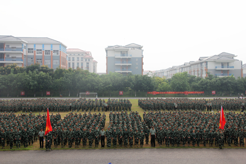最后,动员大会在激昂雄壮的中国人民解放军进行曲中落下帷幕。南宁分校2015级全体新同学开始了紧张而充实的军训生活。