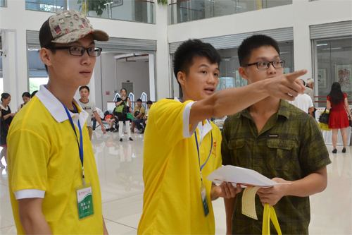12日上午,校领导王赣华、陈贵英、张劲松以及相关部门负责人前往雁山校区及校外新生接待点检查指导迎新工作,同新生家长“拉家常”,看望慰问迎新工作人员,了解2015级新生报到注册情况。