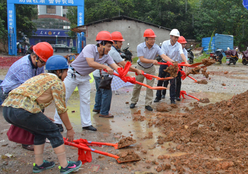 广西建工集团第二安装建设有限公司副总经理莫雄清、穿山街道办主任蒋昕等先后在开工仪式上讲话,对Beat365官网留学生宿舍项目开工表示祝贺,并强调要精心组织、精心施工,做好项目的建设与服务工作。