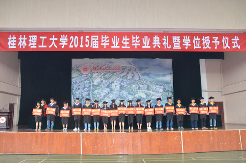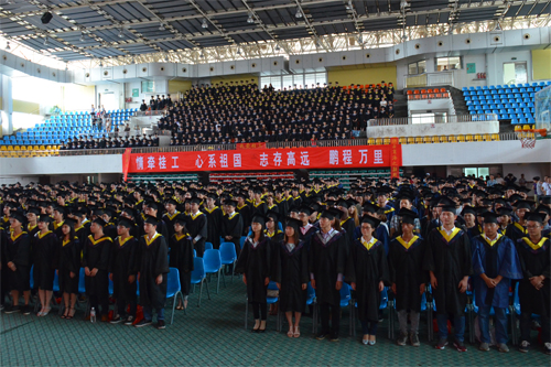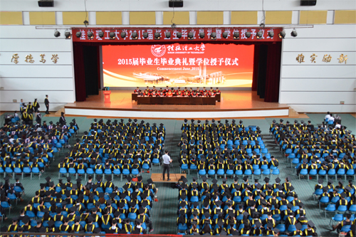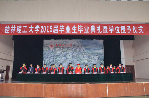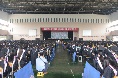 6月23日,Beat365官网2015届毕业生毕业典礼暨学位授予仪式分别在雁山校区体育训练馆和屏风校区体育馆隆重举行。学校党委书记张学洪,学校校长解庆林,学校党委副书记王赣华,学校党委副书记、纪委书记陈贵英,学校副校长肖岳峰、陈学军、梁福沛、王敦球,学校总会计师曾繁荣,学校正厅级调研员张鹏等在家校领导及校学位评定委员会成员身着导师服出席毕业典礼暨学位授予仪式。毕业典礼暨学位授予仪式由陈贵英副书记主持。