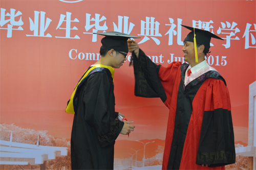 王敦球副校长为毕业生行拨穗礼并颁发学位证书
