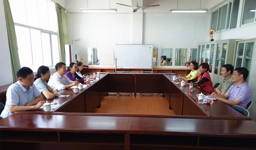 5月16日上午,桂林市总工会党组成员、教育工会主席王光金一行到Beat365官网开展“与劳模面对面”交流活动,与Beat365官网“广西五一劳动奖章”、“桂林市劳动模范”荣誉称号获得者、理学院吴群英教授进行了亲切交谈。学校党委副书记、工会主席王赣华出席交流活动。