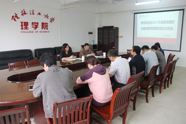 根据学校党委关于开展基层党组织软弱涣散专项整改工作要求,4月18日下午,理学院领导班子在雁山校区7115会议室召开了整改工作专题民主生活会。学校副校长王玫出席民主生活会并给予指导。