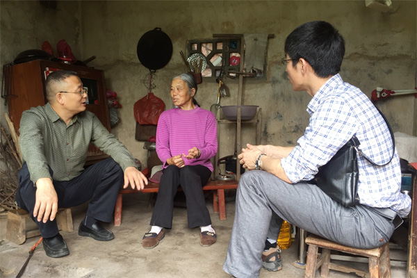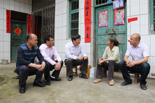 王敦球副校长(左一)到贫困户家中进行结对帮扶