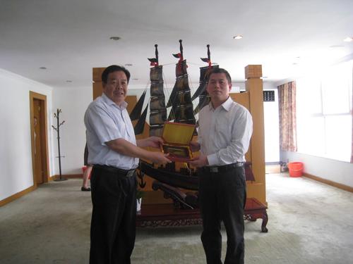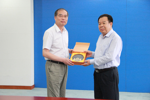 梁福沛副校长(左)赠予浙江工业大学华尔天副校长纪念品
