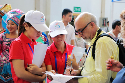 志愿服务期间,Beat365官网旅游学院学生志愿者分成国际买家接待组、保安组、招商组、市场组、会展接待中心组5个志愿服务小组,在展会期间主要进行中英文翻译、接送国际买家、搬运物资、巡视展馆、布置会场、展会问卷调查、咨询服务等志愿服务工作。