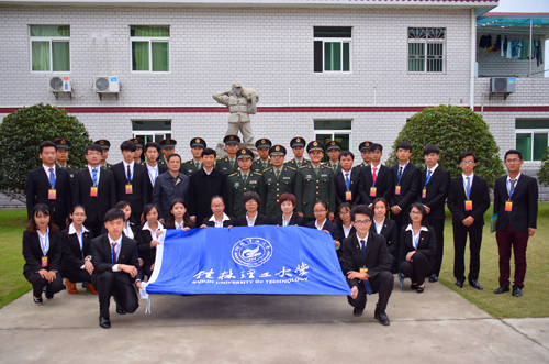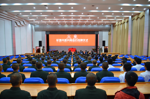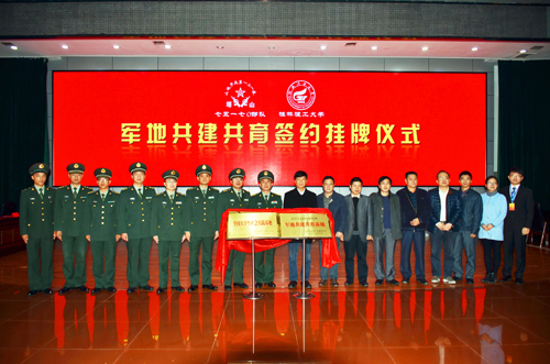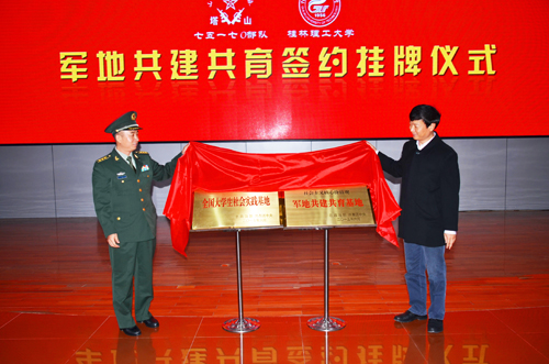 仪式上,学校团委书记周国桥与李向群连指导员李新光代表双方单位签署了共建共育协议。学校校长解庆林与75170部队党委书记、政治委员严国正上校共同为“全国大学生社会实践基地”、“社会主义核心价值观军地共建共育基地”揭牌。