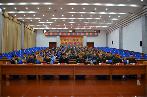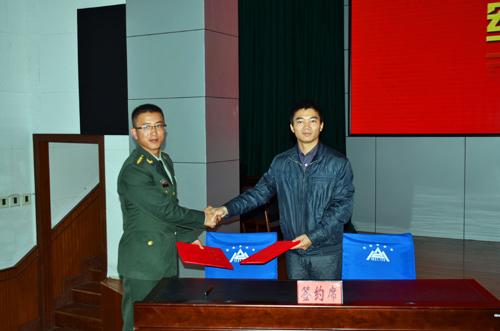 学校团委书记周国桥与李向群连指导员李新光代表双方单位签署共建共育协议