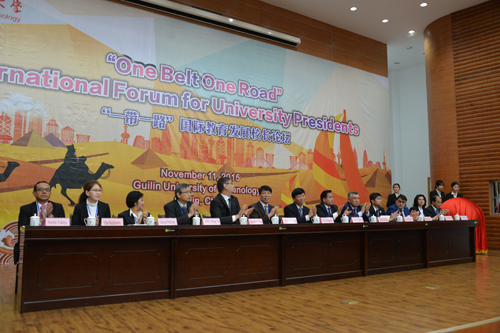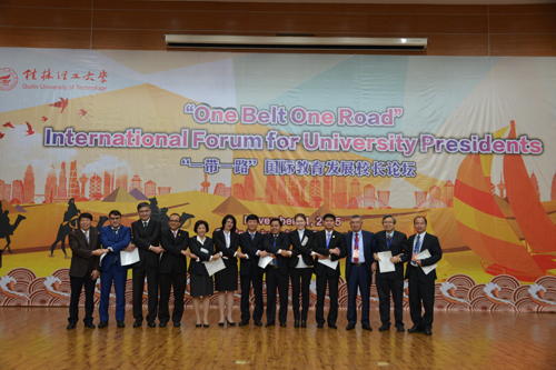 为期两天的“一带一路”国际教育发展校长论坛在圆满完成各项议程后今天胜利闭幕了。会上,吉尔吉斯斯坦民族大学、俄罗斯-塔吉克斯拉夫大学、塔吉克斯坦国立理工大学、塔吉克库江国立大学、哈萨克斯坦亚欧教育集团、马来西亚拉曼大学、马来西亚理工大学、泰国兰实大学、柬埔寨贝尔太国际大学及台湾地区树德科技大学等“一带一路”沿线国家和地区的十余所高校和教育集团的相关负责人聚首桂林,共话“一带一路”沿线国家和地区教育发展。
