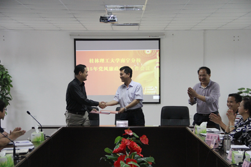 会上,分校校长王文、党委书记罗雪平与分校领导班子成员代表黄润均签订了责任状;分校副校长劳景寮、梁锦叶分别与分管的部分单位、部门党政主要负责人代表签订了责任状。