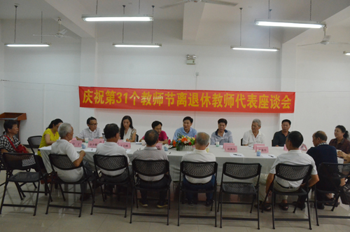 9月10日下午,学校党委副书记王赣华在离退处会议室主持召开2015年教师节离退休老教师代表座谈会。部分离退休老教师代表及宣传部、离退处等部门负责人参加会议。