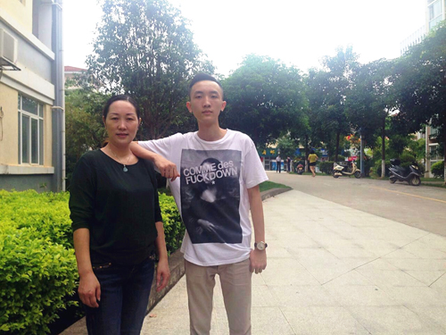 计算机应用技术专业15级2班新生余思浪与妈妈在空港校区合影