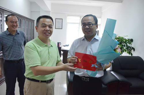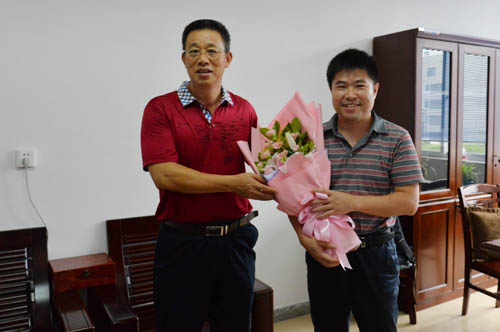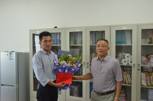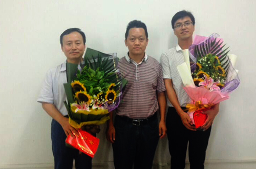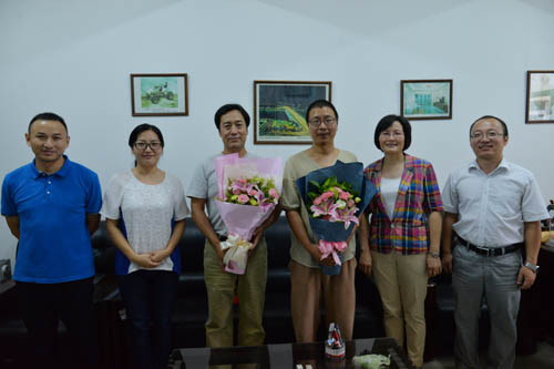 曾繁荣总会计师(中)慰问化生学院杨建文老师、李延伟老师