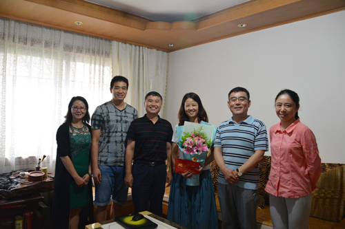副厅级调研员张劲松(左三)慰问马克思主义学院黄琳庆老师(右三)