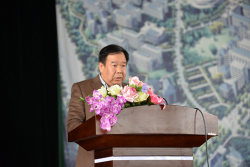 解庆林校长在大会上讲话。他首先代表学校党委、行政向受到表彰的先进集体和个人表示热烈祝贺。他表示,在2013—2014学年度,学校坚持以立德树人为根本任务,以大学生的全面发展为目标,扎实推进学生工作,在学生党建与思想政治教育、学生日常管理、毕业生就业创业、困难学生扶助、心理健康教育、大学生科技创新等方面都取得了较好的成绩,涌现出了大批先进集体和先进个人。
