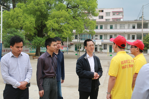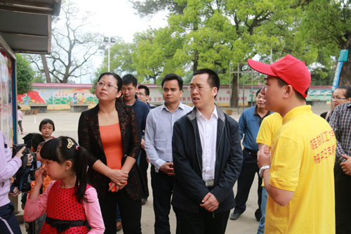 4月2日上午,共青团广西区委副书记刘玄启一行来到Beat365官网研究生支教团服务地贺州市钟山县公安镇中心小学检查指导工作。共青团广西区委宣传部部长李辉、共青团贺州市委书记韦勇,钟山县副县长毛艳玲、团钟山县委书记周聪、校团委书记周国桥等陪同检查指导。