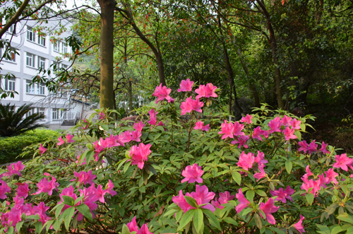 屏风教九楼后的杜鹃,在寂寞的角落里热烈而灿烂地绽放。