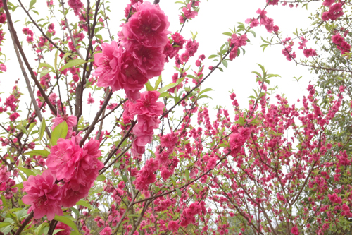 桃花灿烂,春意暖阳;若将人面比桃花,面自桃红花自美。