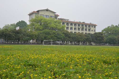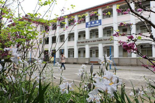白色鸢尾花和红色紫荆花掩映下的国际教育学院透着些许别样的风情。