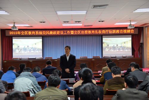 自治区教育厅副厅长白志繁在会上通报了2014年全区规范教育收费,治理教育乱收费工作情况,部署了扎实推进2015年全区规范教育收费,治理教育乱收费工作的主要任务:一是要继续深化三个专项治理,进一步解决群众反映强烈的突出问题;二是要着力巩固,拓展成效,进一步规范各级各类学校的办学行为;三是要严明纪律职责,确保治理工作落实。
