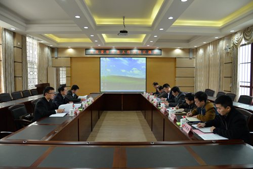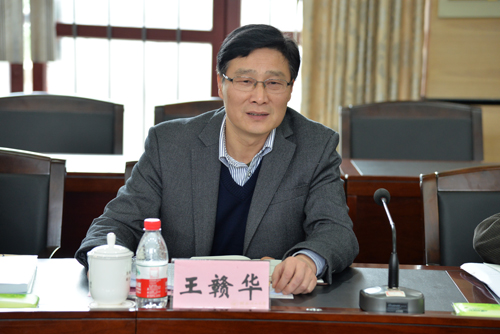 学校党委副书记王赣华向调研组作汇报