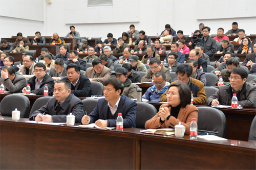 解庆林校长(前排中)、陈贵英副书记(前排右一)、肖岳峰副校长(前排左一)出席报告