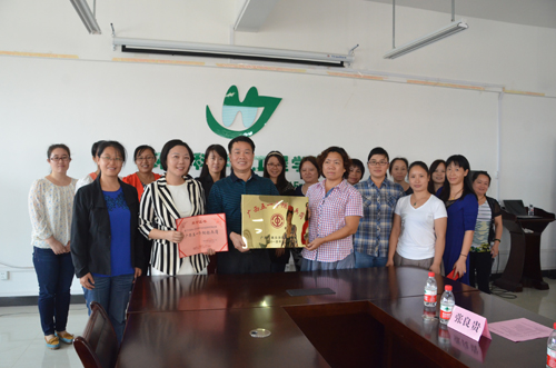 桂林市教育工会王光金主席受自治区总工会委托向水环境保护与利用教学科研巾帼攻坚组授牌